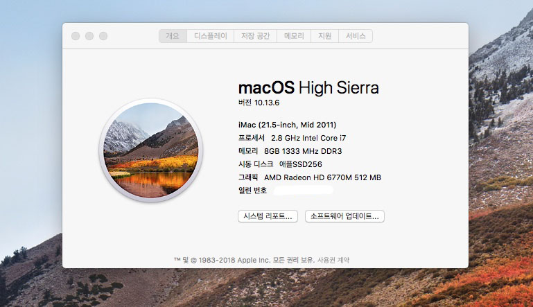 맥os 10.13 하이 시에라 설치됨